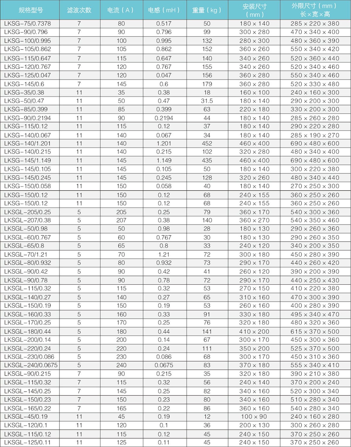 該濾波電抗器用于低壓濾波柜中,與濾波電容器相串聯(lián),調(diào)諧至某一諧振頻率,用來吸收電網(wǎng)中相應(yīng)頻率的諧波電流。低壓電網(wǎng)中有大量整流、變流、變頻裝置等諧波源,其產(chǎn)生的高次諧波會嚴重危害主變及系統(tǒng)中其他電器設(shè)備的安全運行。濾波電抗器與電容器相串聯(lián)后,不但能有效地吸收電網(wǎng)諧波,而且提高了系統(tǒng)的功率因數(shù),對于系統(tǒng)的安全運行起到了較大的作用。