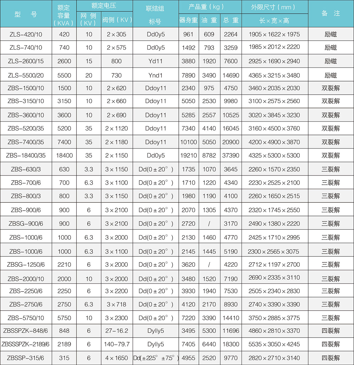勵(lì)磁用整流變壓器技術(shù)參數(shù)